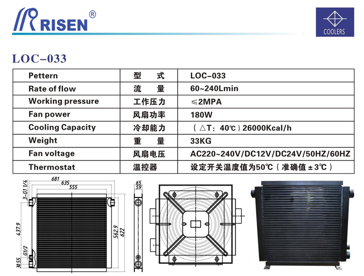 RISEN 日森 板式 風冷卻器 兩側油口 風冷 LOC-033 60-240L