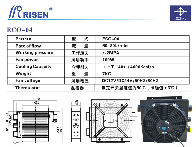 RISEN 日森 板式 風(fēng)冷卻器 兩側(cè)油口 直流電 風(fēng)冷 ECO-04 60-80L