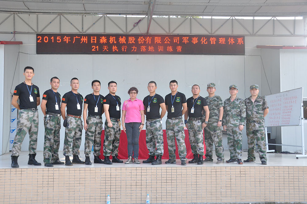 2015年8月7、8日,日森公司在番禺舉行了為期兩天一夜的軍事化管理體系暨21天執(zhí)行力落地訓(xùn)練。