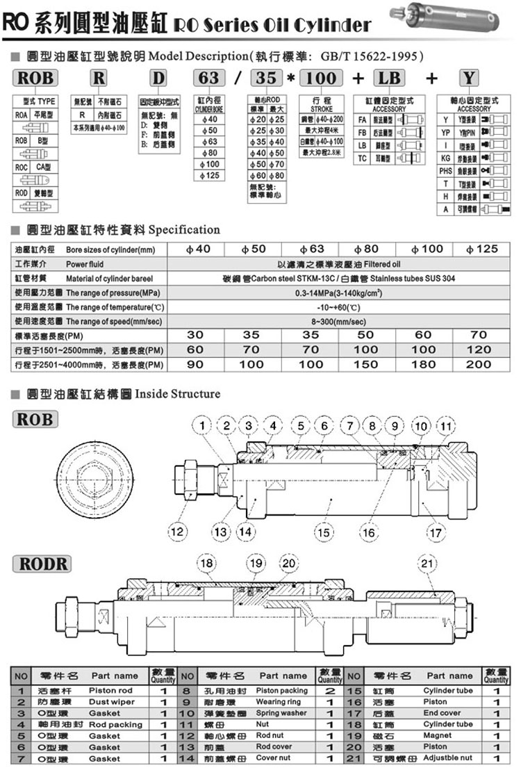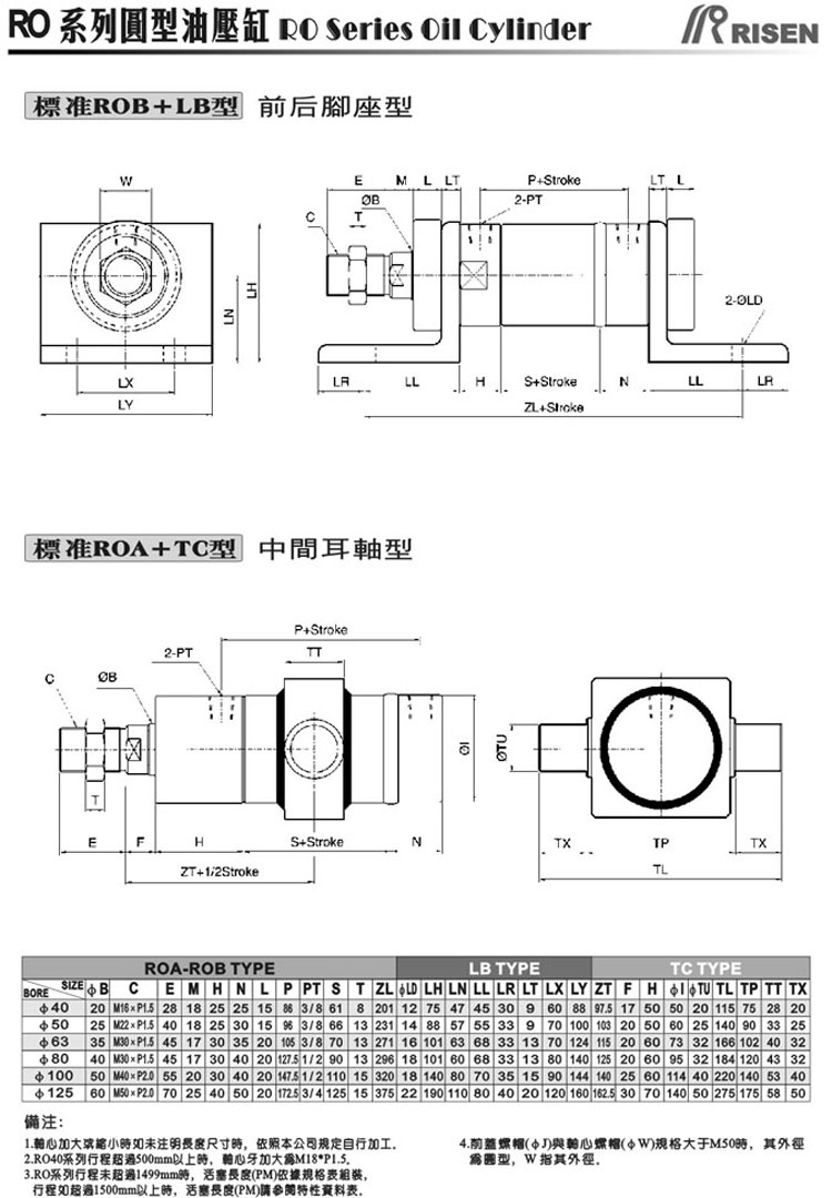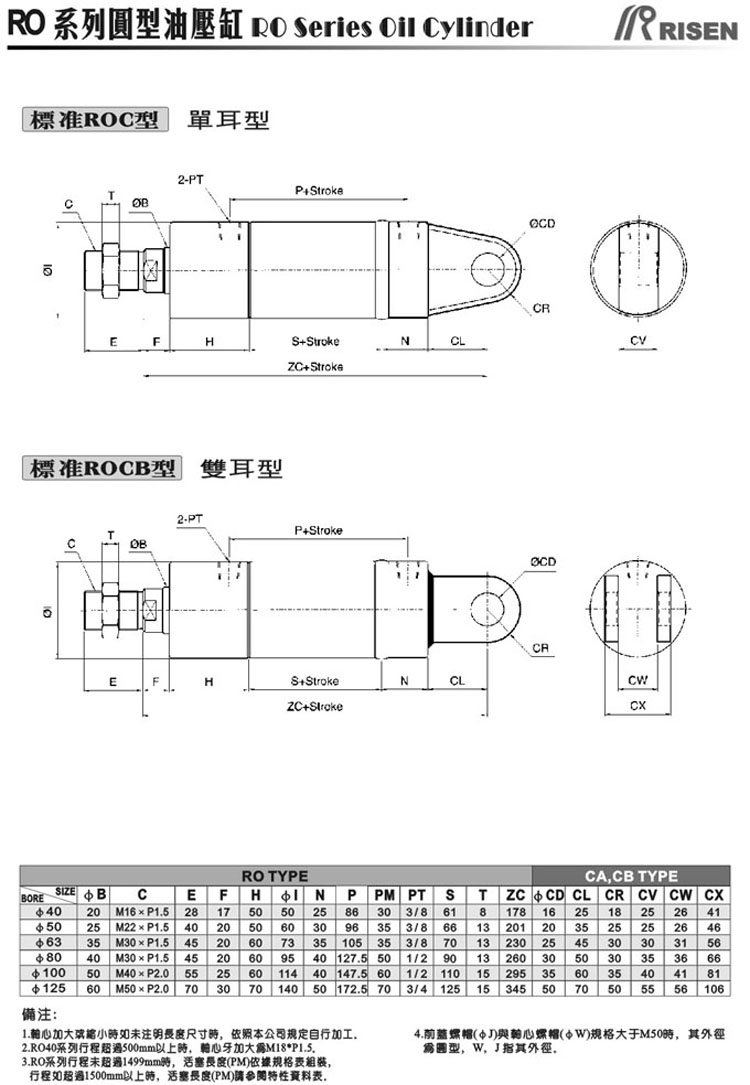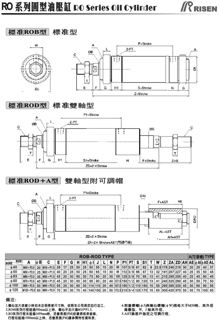 RISEN 日森 ROB系列 圓型油缸 單軸 液壓缸 14Mpa