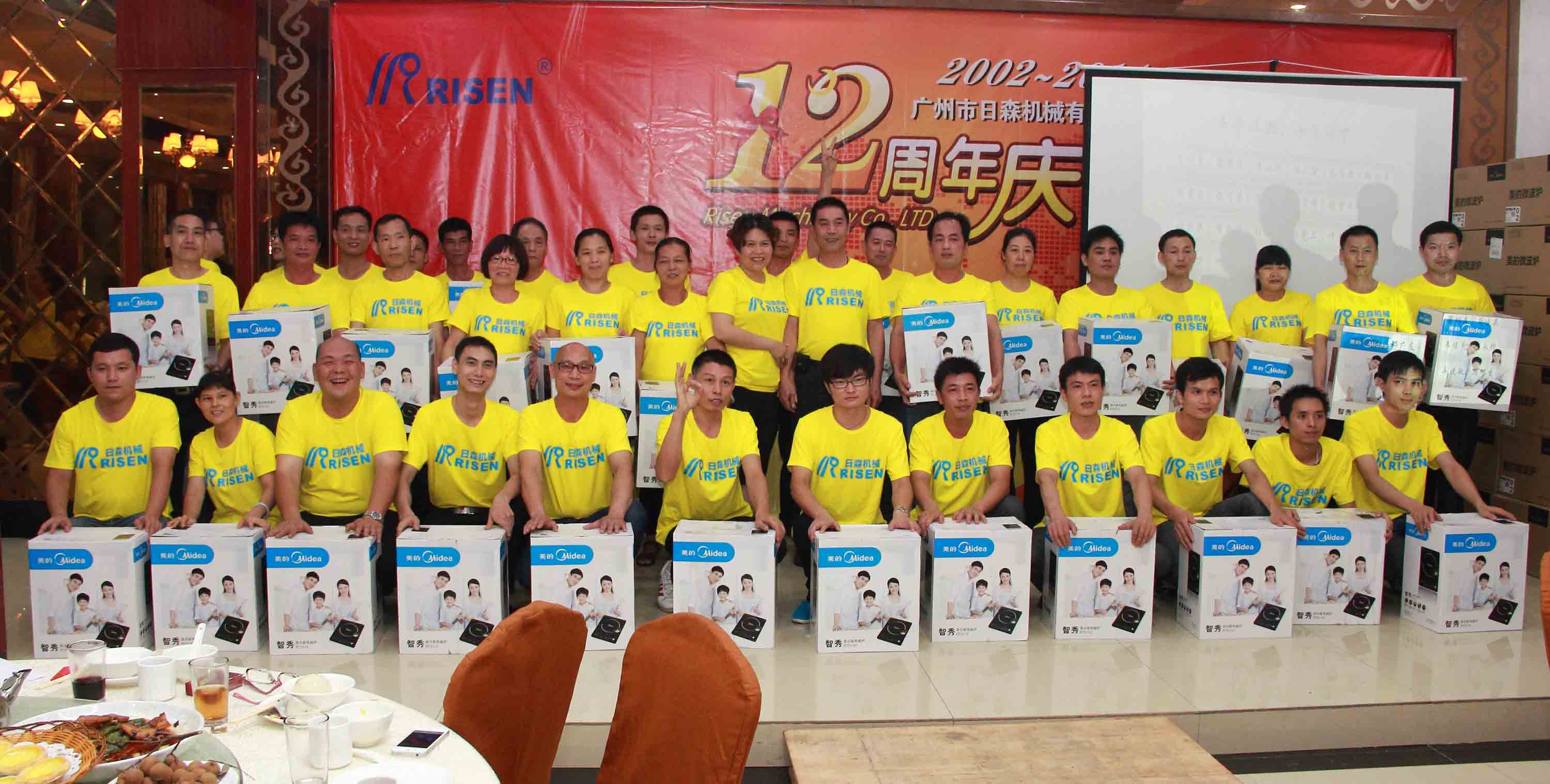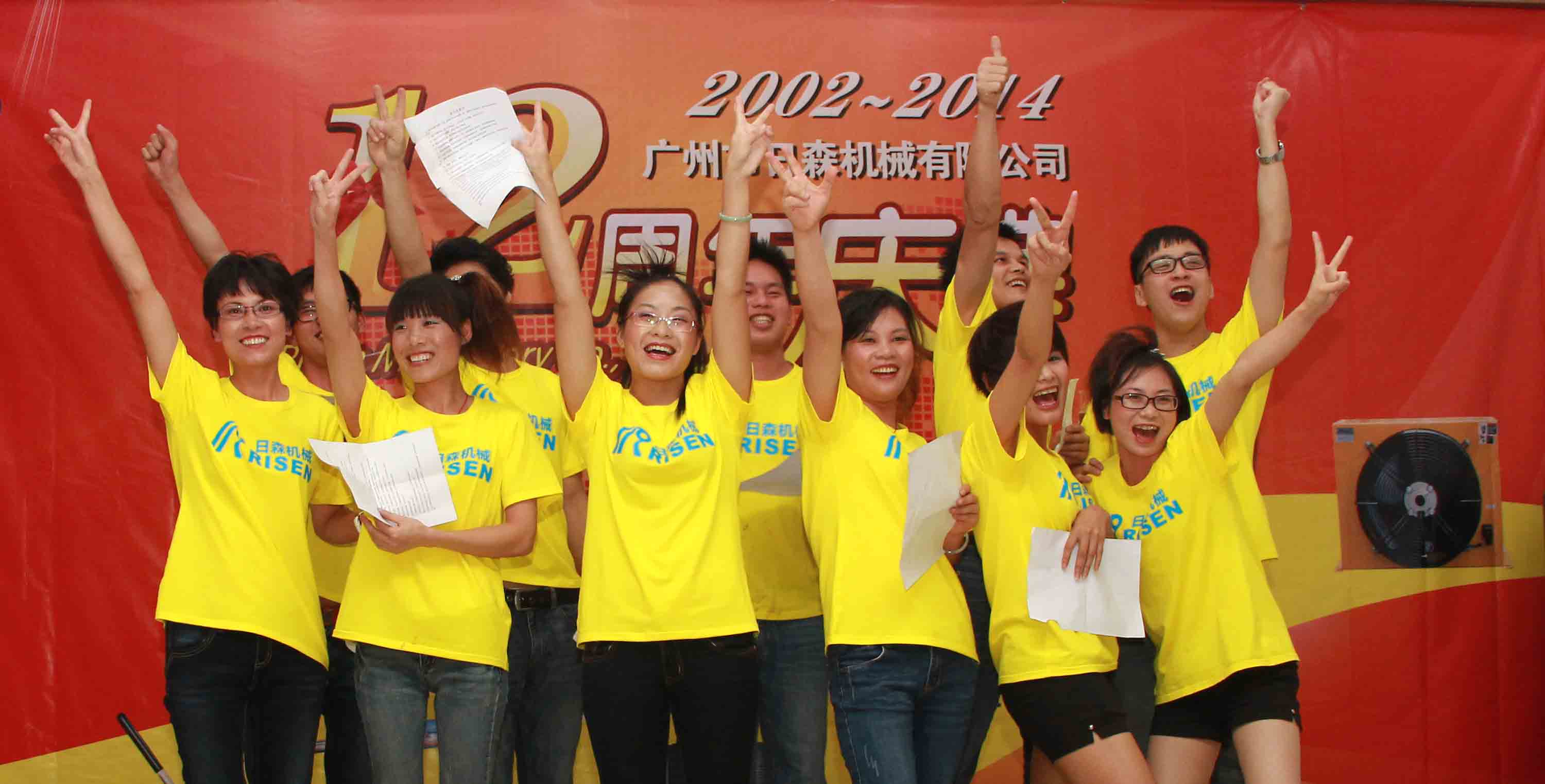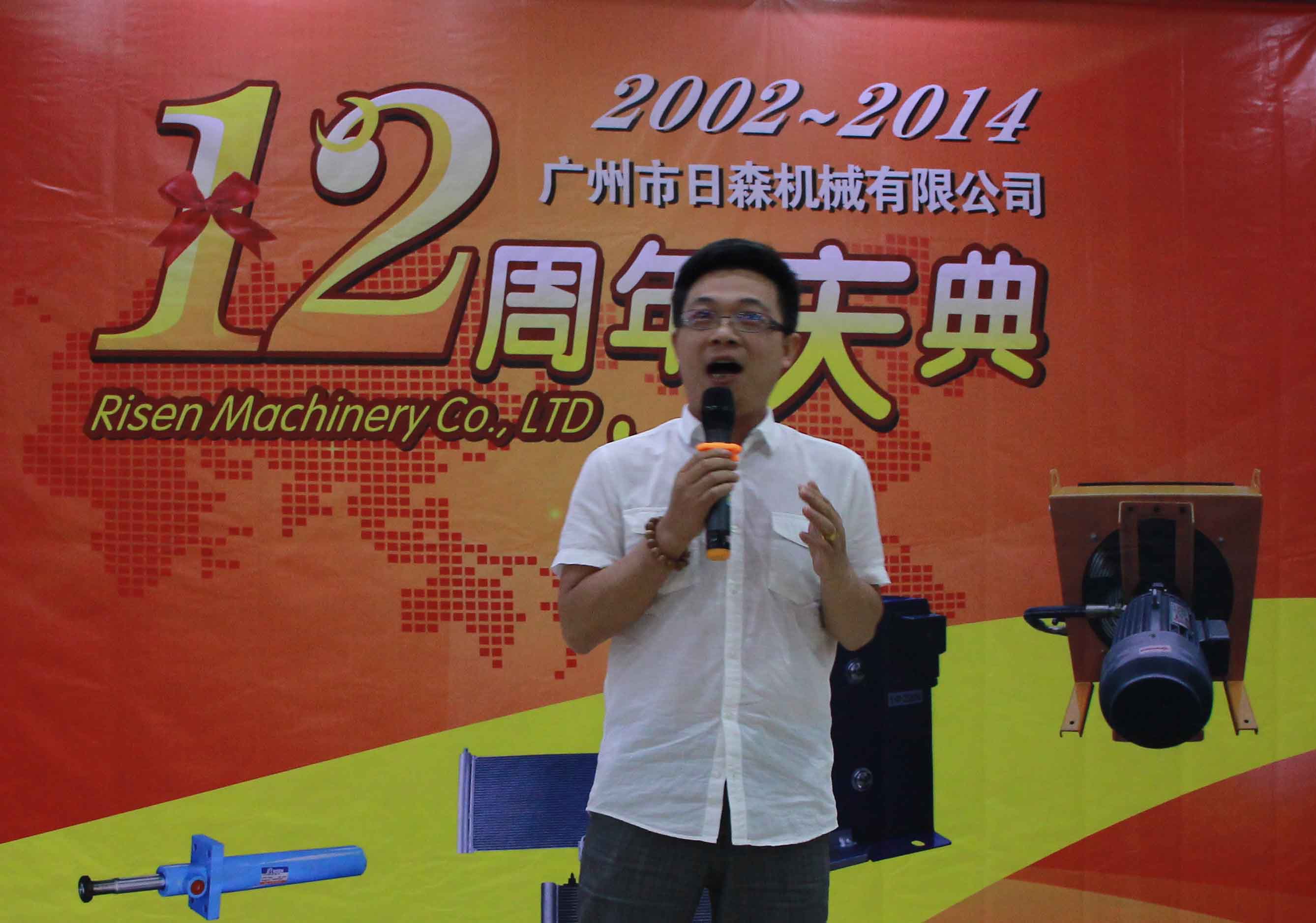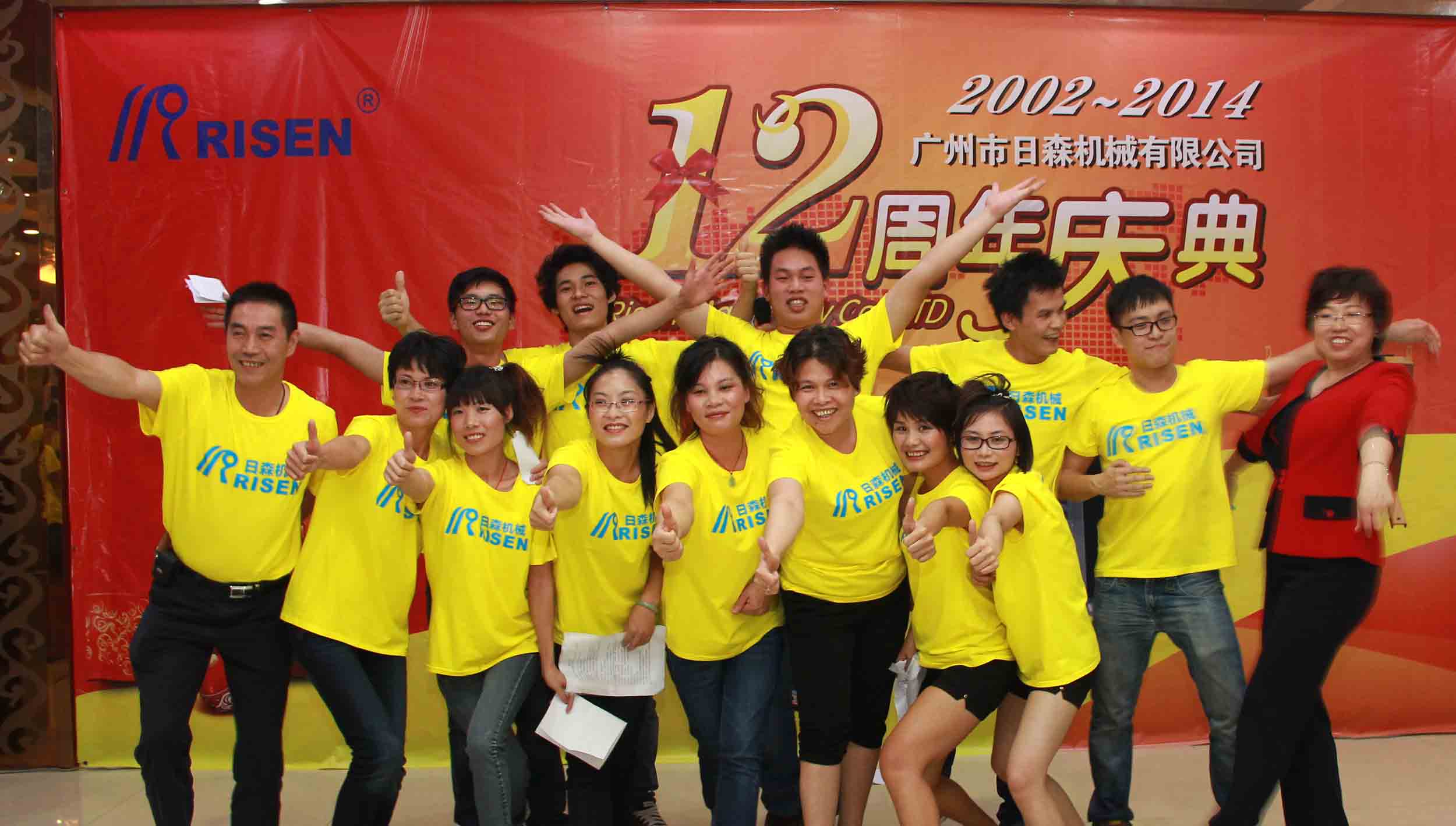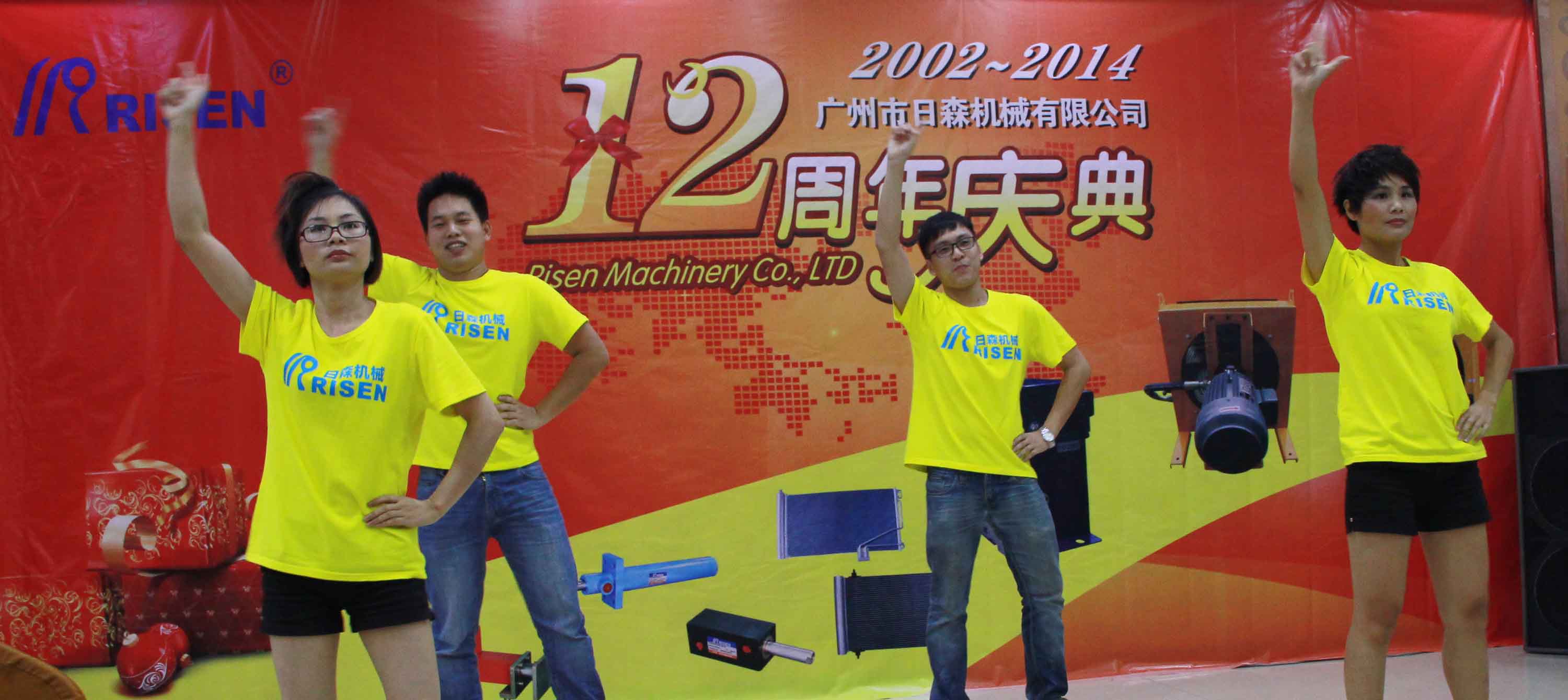 日森公司12周年慶典于2014年7月28日隆重舉行!全體日森人歡聚一堂共同為“日森”慶生!慶典以《日森之路》PPT開始,接著是日森人自編自演的《工裝秀》、《小蘋果》舞蹈節(jié)目,以及嘉賓袁鵬飛的獨唱《在那桃花盛開的地方》!
